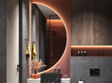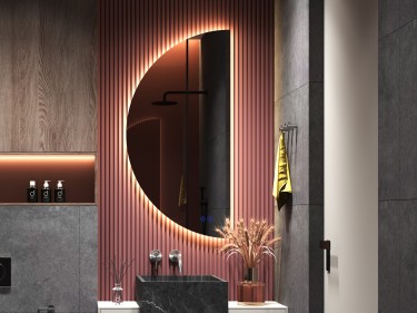 Voorzien van: 220volt stekker (plug and play met 90 graden bocht zodat deze achter de spiegel in een wandcontactdoos kan). Verwarming ter voorkoming van condens (2.5w per dm3).